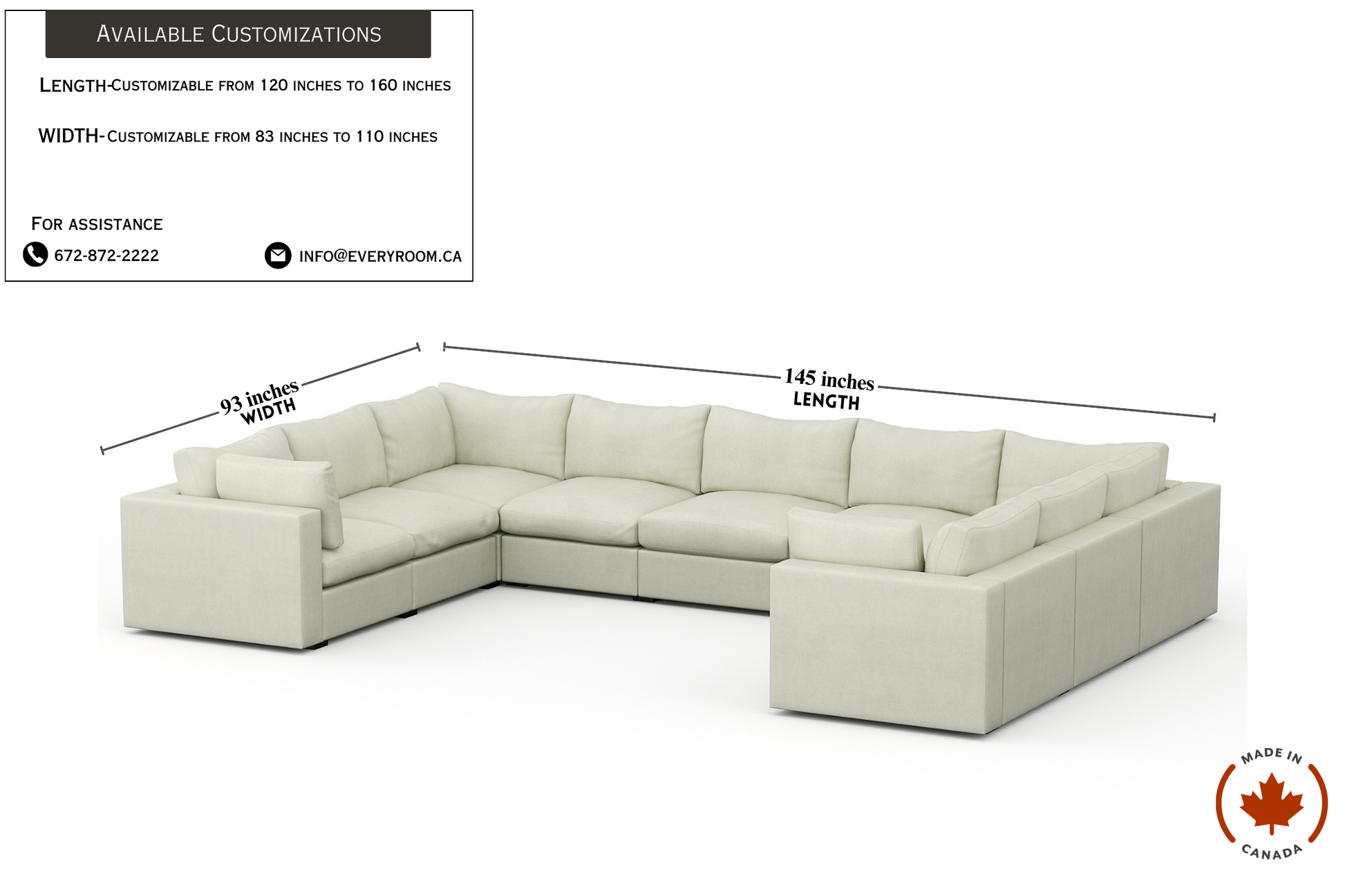 Extra Deep Seating: 145" W x 93" D