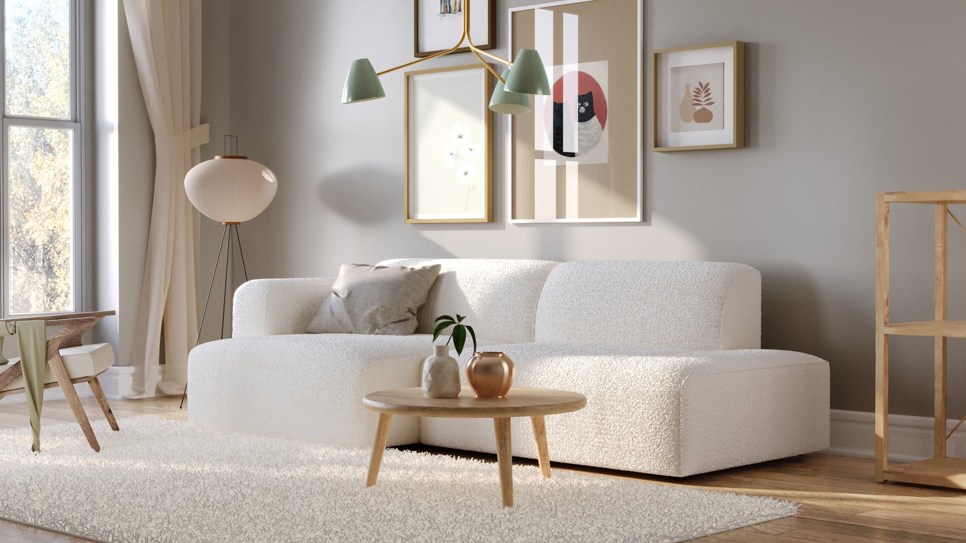 Luna Boucle White Curve Loveseat