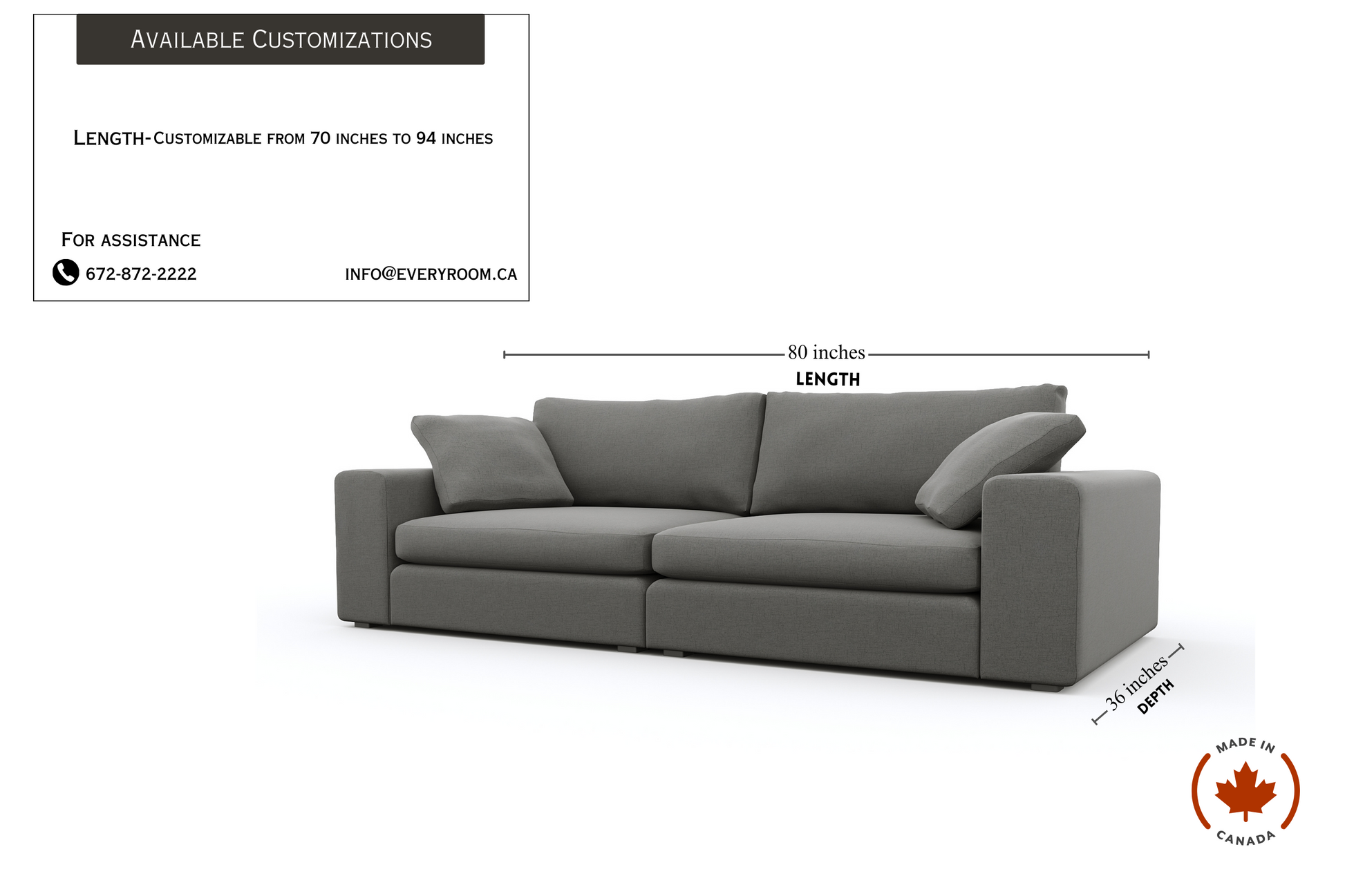 Extra Deep Seating: 80" W x 36" D