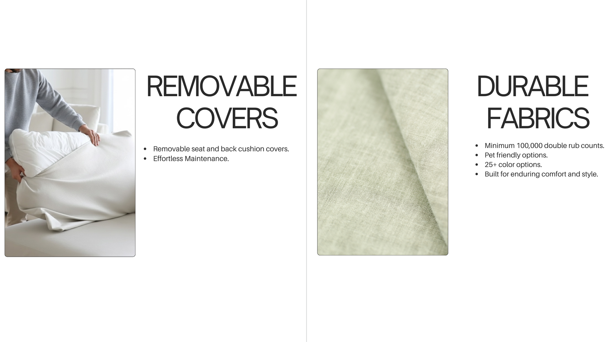 - Fabrics are Performance Plus and are fully machine washable, ensuring easy care and maintenance.