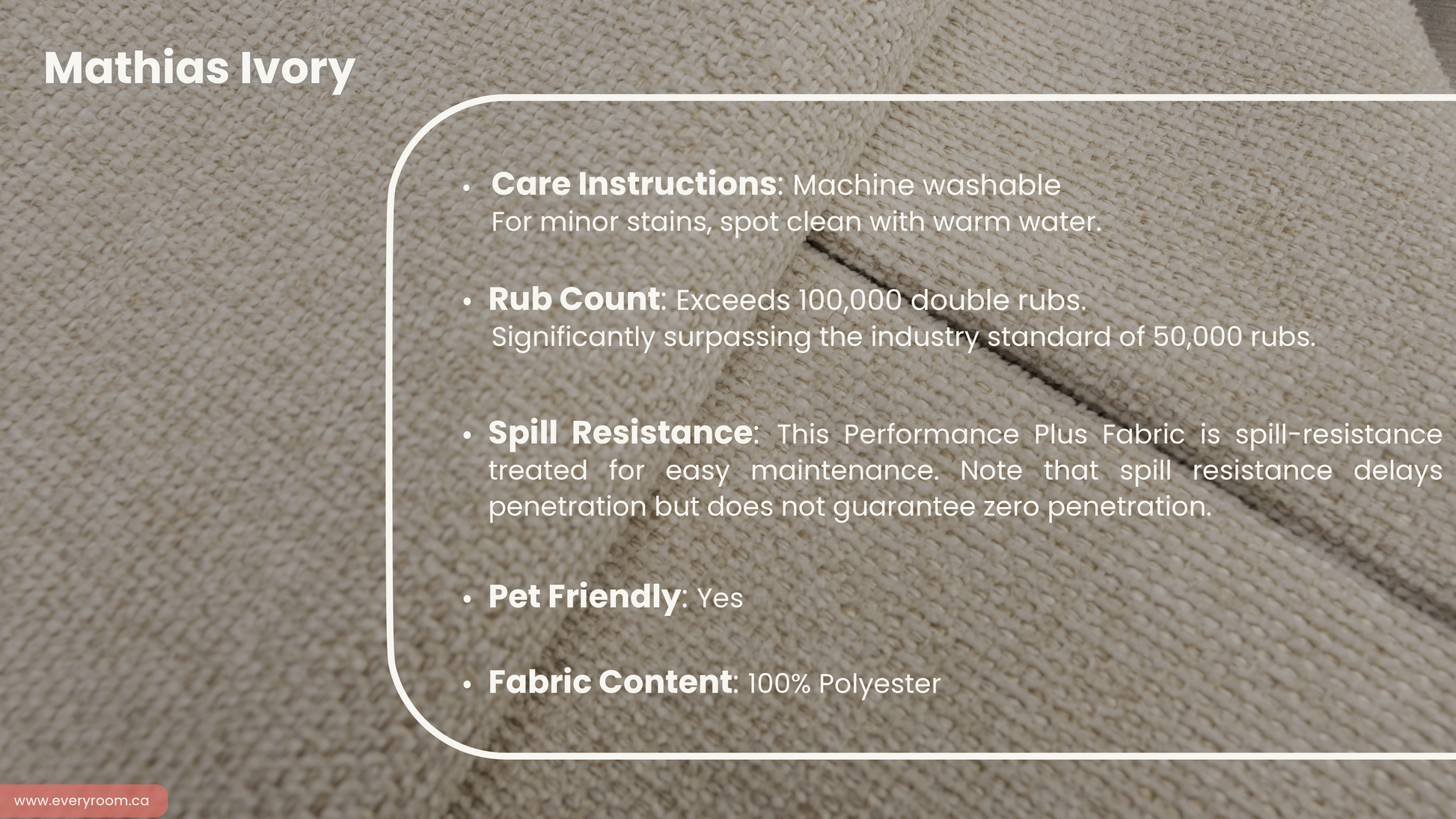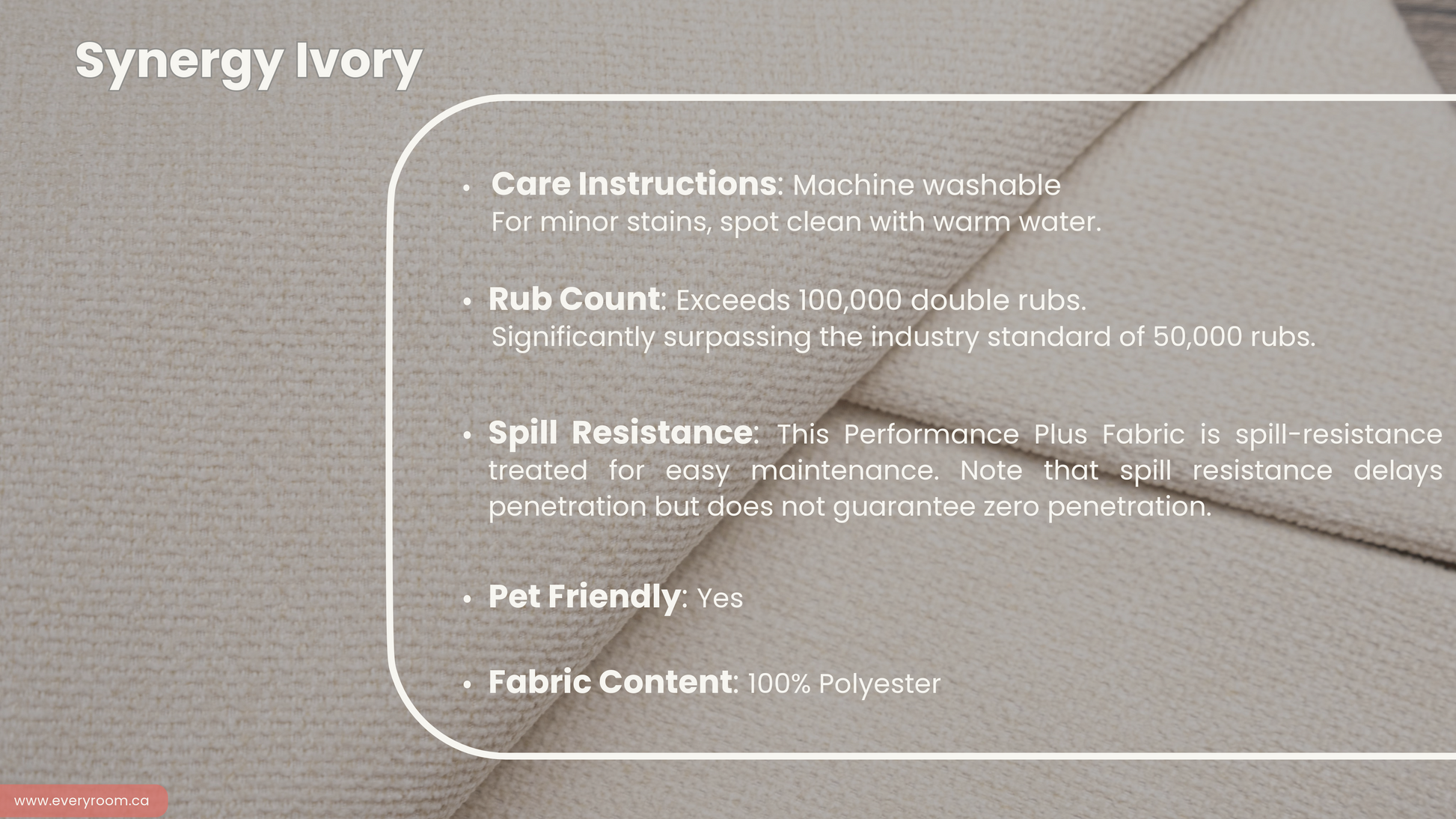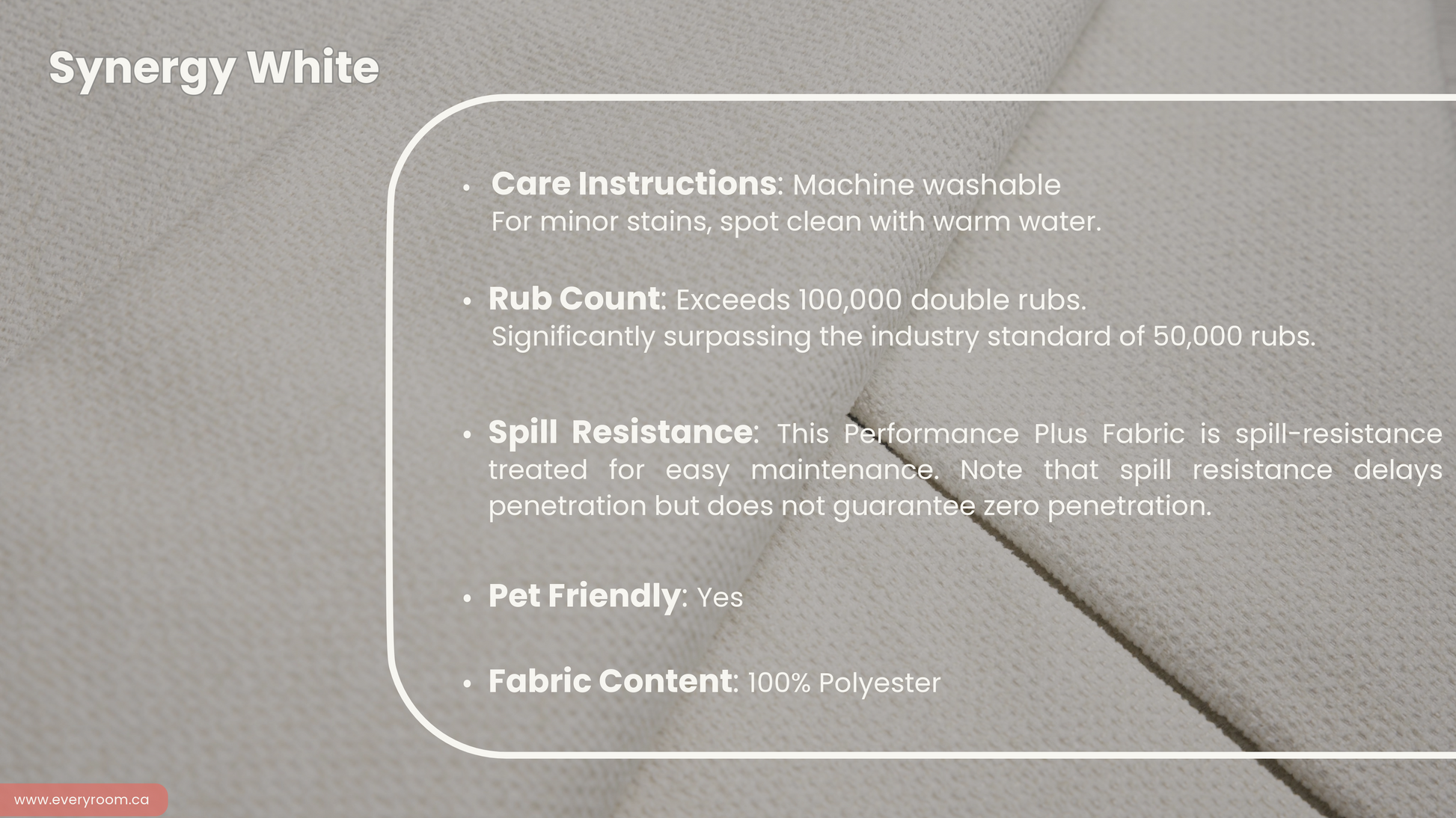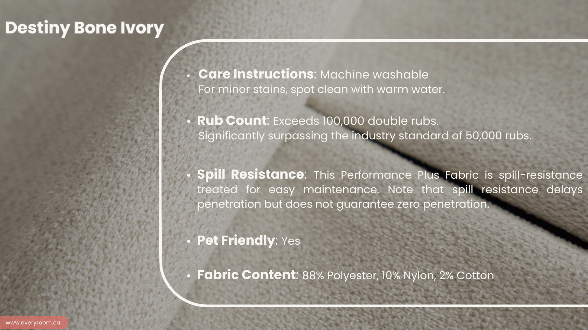 - Fabrics are Performance Plus and are fully machine washable, ensuring easy care and maintenance.