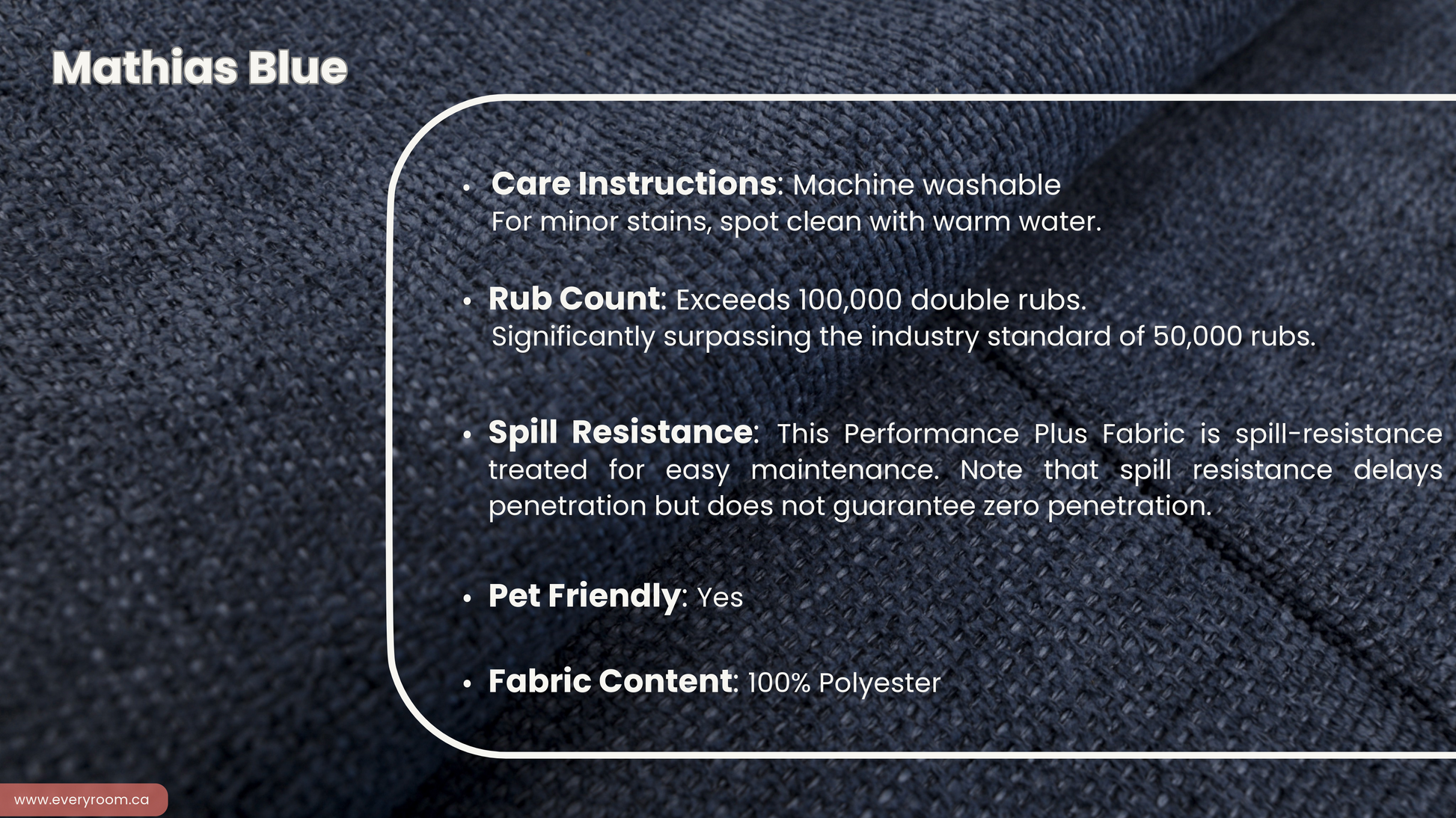 - Fabrics are Performance Plus and are fully machine washable, ensuring easy care and maintenance.