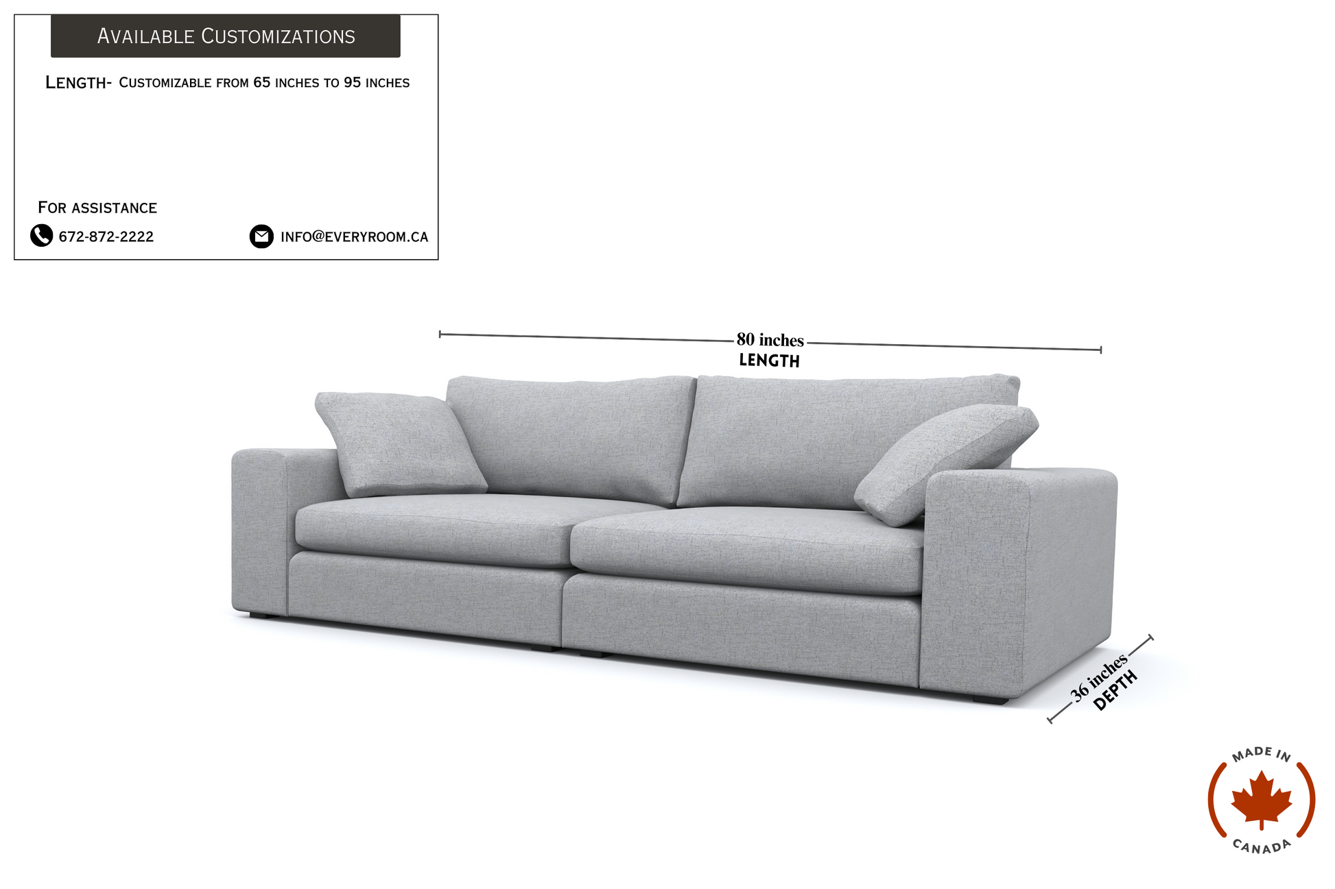 Door Delivery in the rest of Canada. All our couches come fully assembled, require no tools, and can be set up in just 15 minutes.